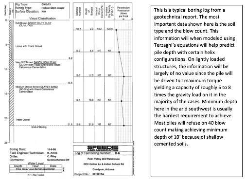 - On commercial projects with heavy loads and more complicated loads soil borings provide helpful information to simulate and determine which pile is best suited for the application. On almost all residential projects that information will not change the design of the pile because the pile is so overdesigned for residential loads. So in essence we are going through an exercise that has no effect on the installation pile or procedure.