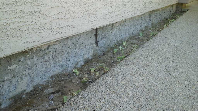 horizontal crack around the perimeter of the house known as the stem wall fail